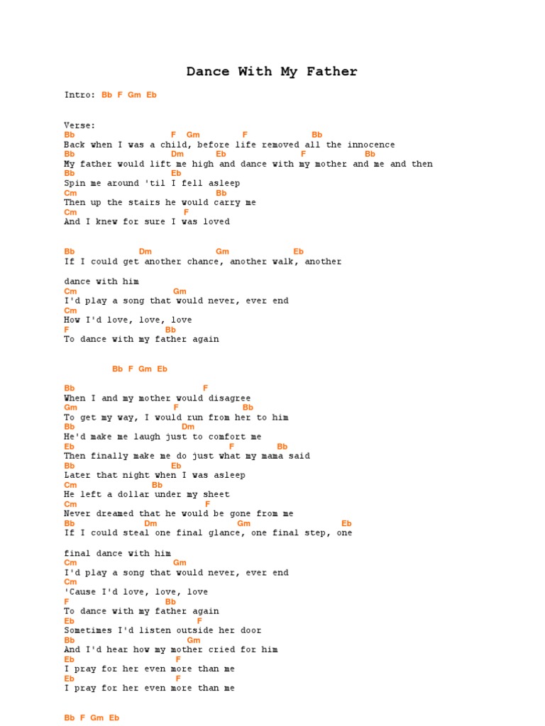 Check spelling or type a new query. We did not find results for: Dance with my father song. With richard marx, vandross wrote the song based on his personal experience. The lyrics recall childhood memories with vandross' father, who used to dance with him and his mother. Despite the lack of promotion due in part to vandross' hospitalization, dance with my father be. Maybe you would like to learn more about one of these?